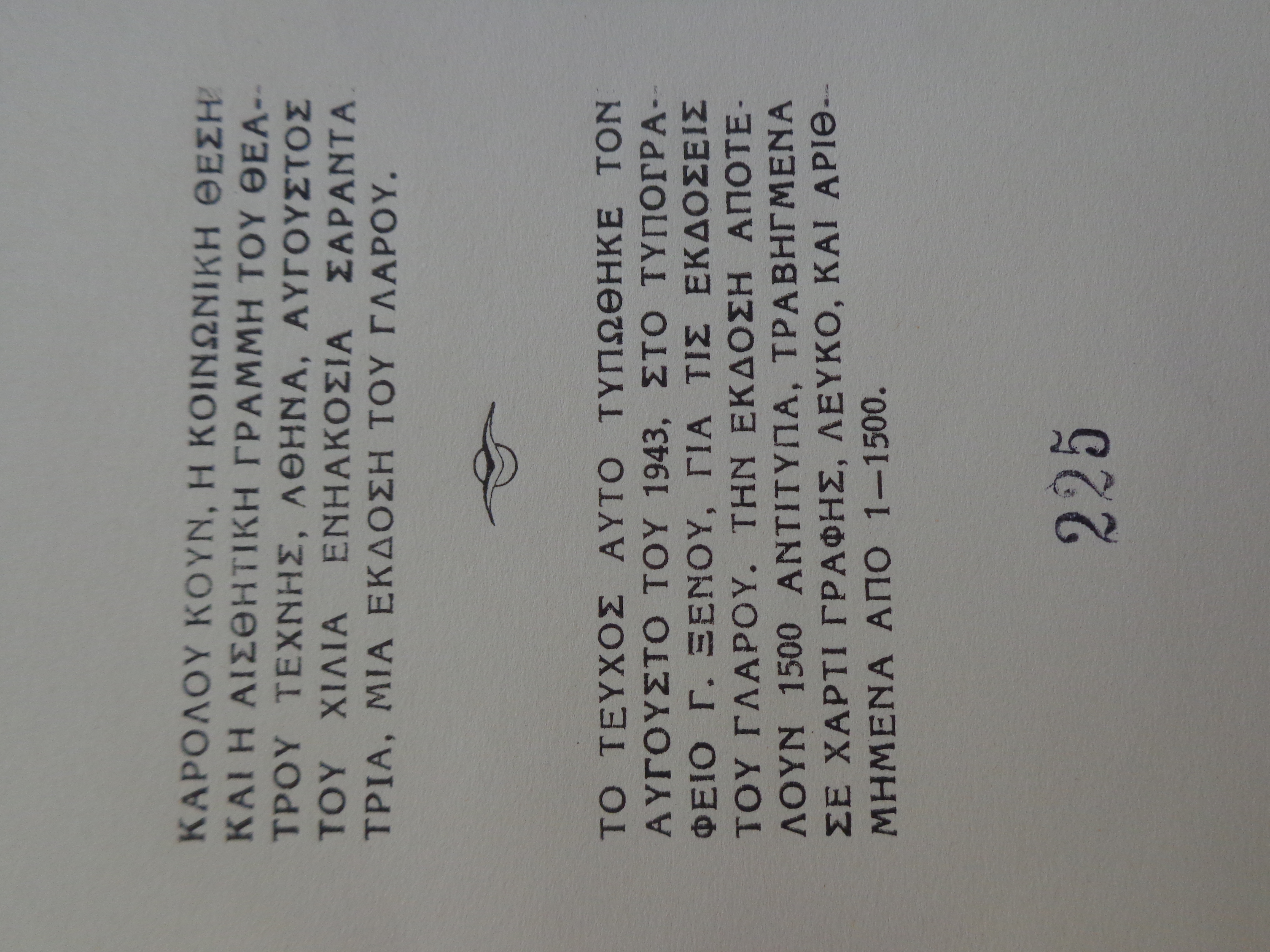 Εκδότης: "Ο Γλάρος", Αθήνα, 1943.
