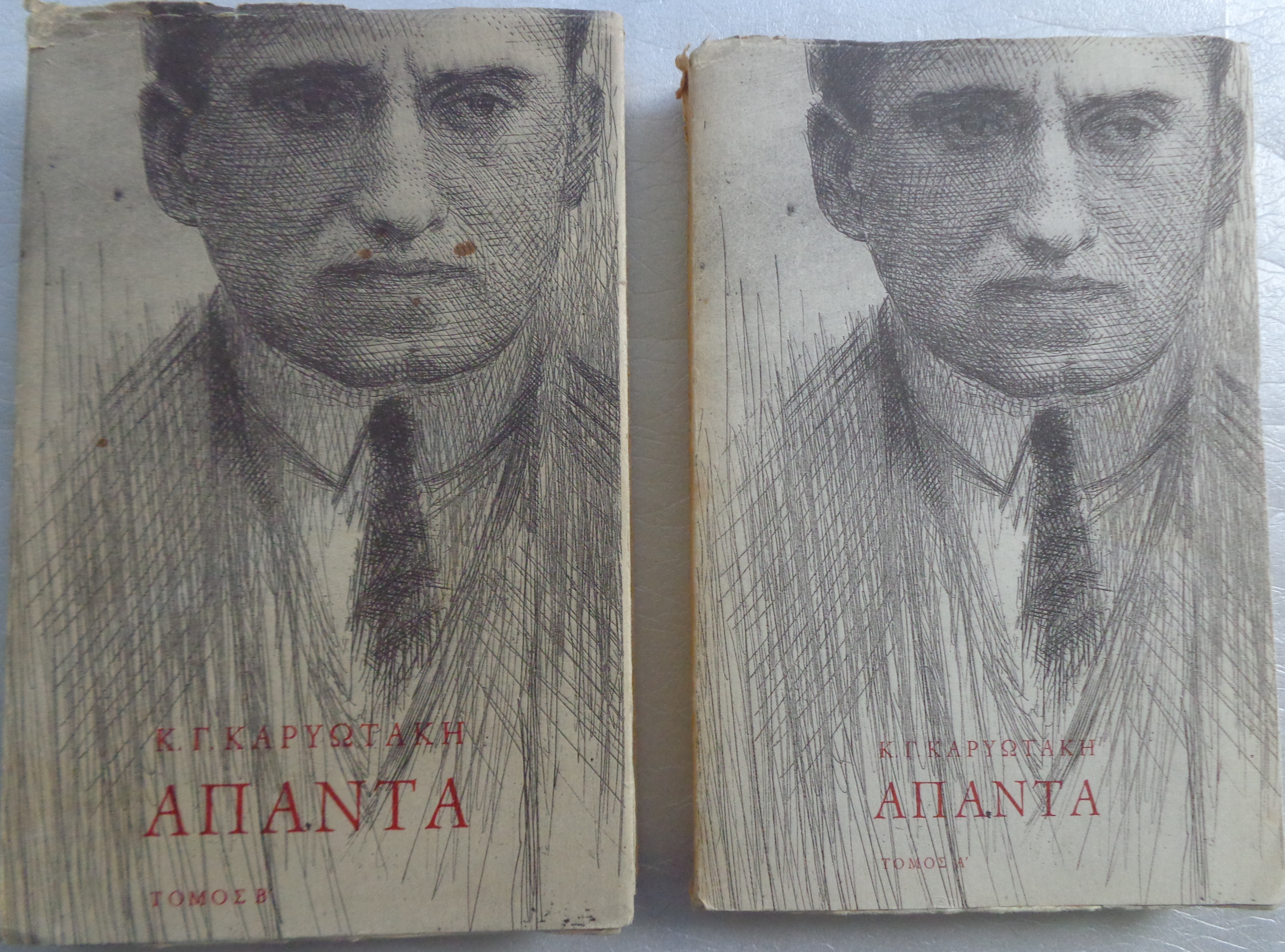 Προμετωπίδα του Α’ τόμου – πορτραίτο του ποιητή σε σχέδιο του Γ. Βαρλάμου, προμετωπίδα στον Β’ τόμο και 24 σελίδες φωτογραφιών του ποιητή καθώς και χειρογράφων του στο τέλος του Β’ τόμου. Ιδιωτική βιβλιοδεσία (πανί), δερμάτινη ράχη. Ωραίο αντίτυπο.