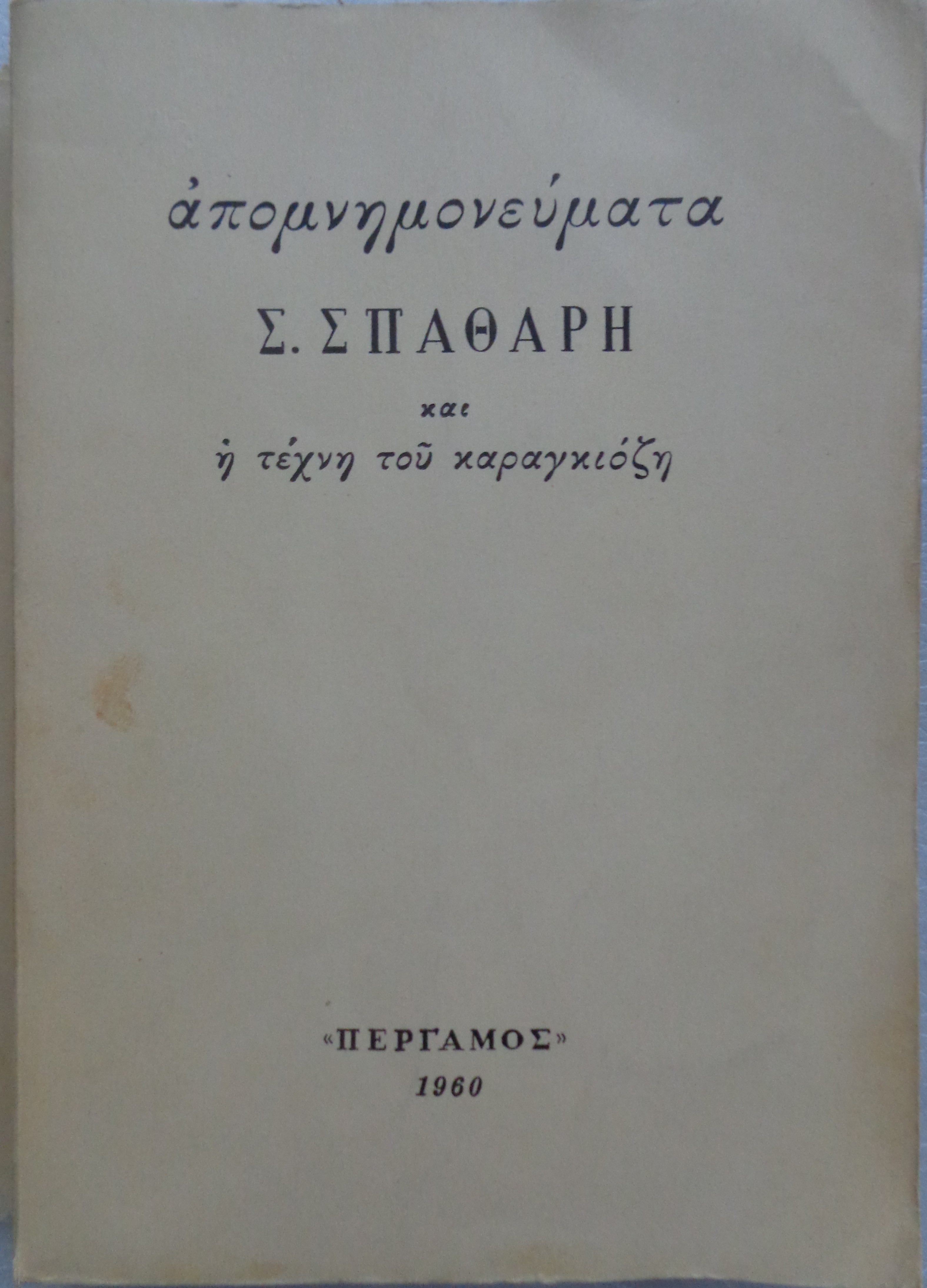 Απομνημονεύματα Σ. ΣΠΑΘΑΡΗ και η τέχνη του Καραγκιόζη