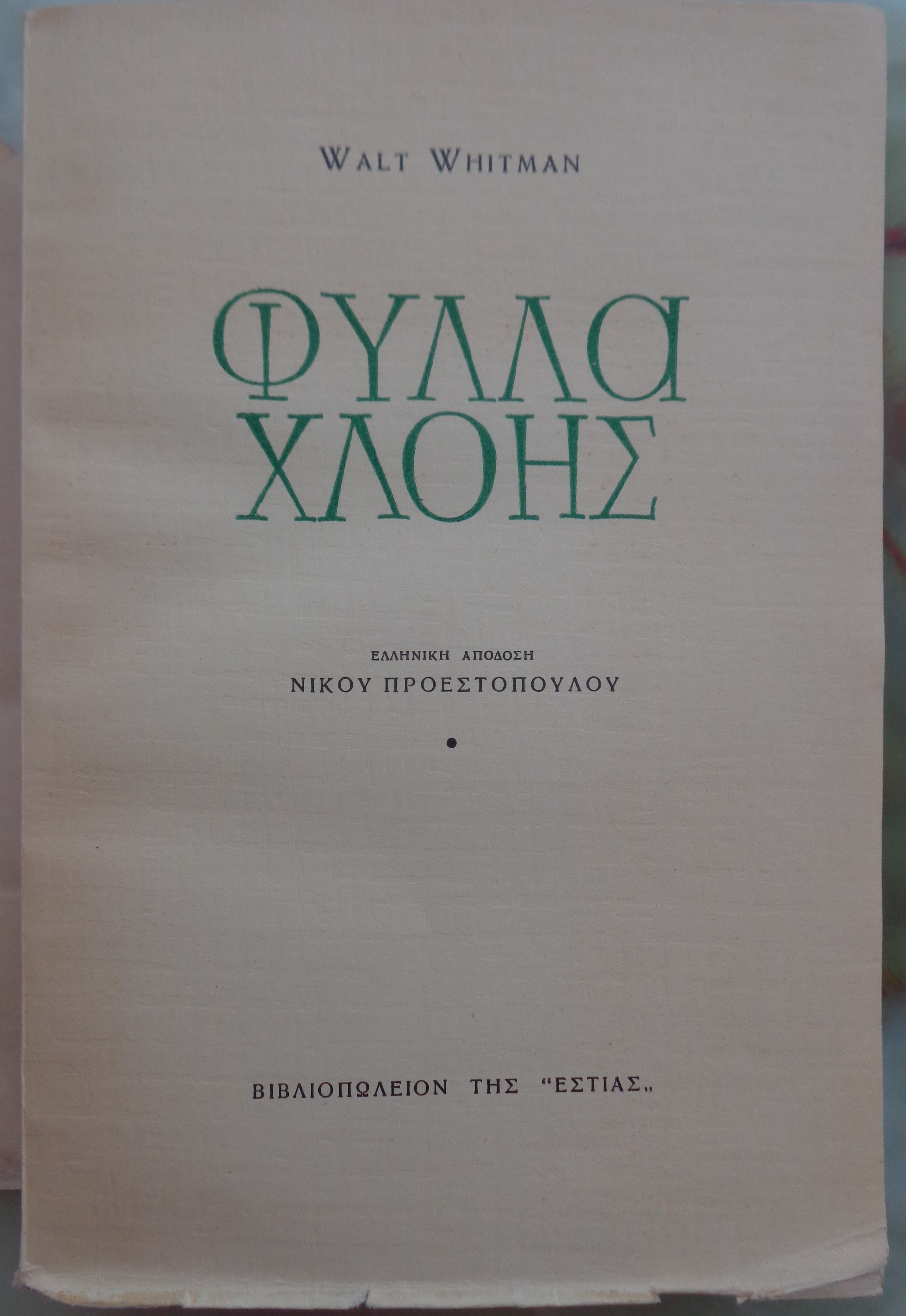 ΦΥΛΛΑ ΧΛΟΗΣ Φυλλα χλοης Leaves of Grass ΓΟΥΙΤΜΑΝ ΓΟΥΟΛΤ Γουόλτ Ουίτμαν Γουόλτ Γουίτμαν Walter "Walt" Whitman Γουολτ Ουιτμαν Γουολτ Γουιτμαν ΠΡΟΕΣΤΟΠΟΥΛΟΣ ΝΙΚΟΣ Νικος Προεστοπουλος Άγγελος Σικελιανός Αγγελος Σικελιανος Άγγελο Σικελιανό Αγγελο Σικελιανο Άγγελου Σικελιανού Αγγελου Σικελιανου ANGELOS SIKELIANOS Angelos Sikelianos