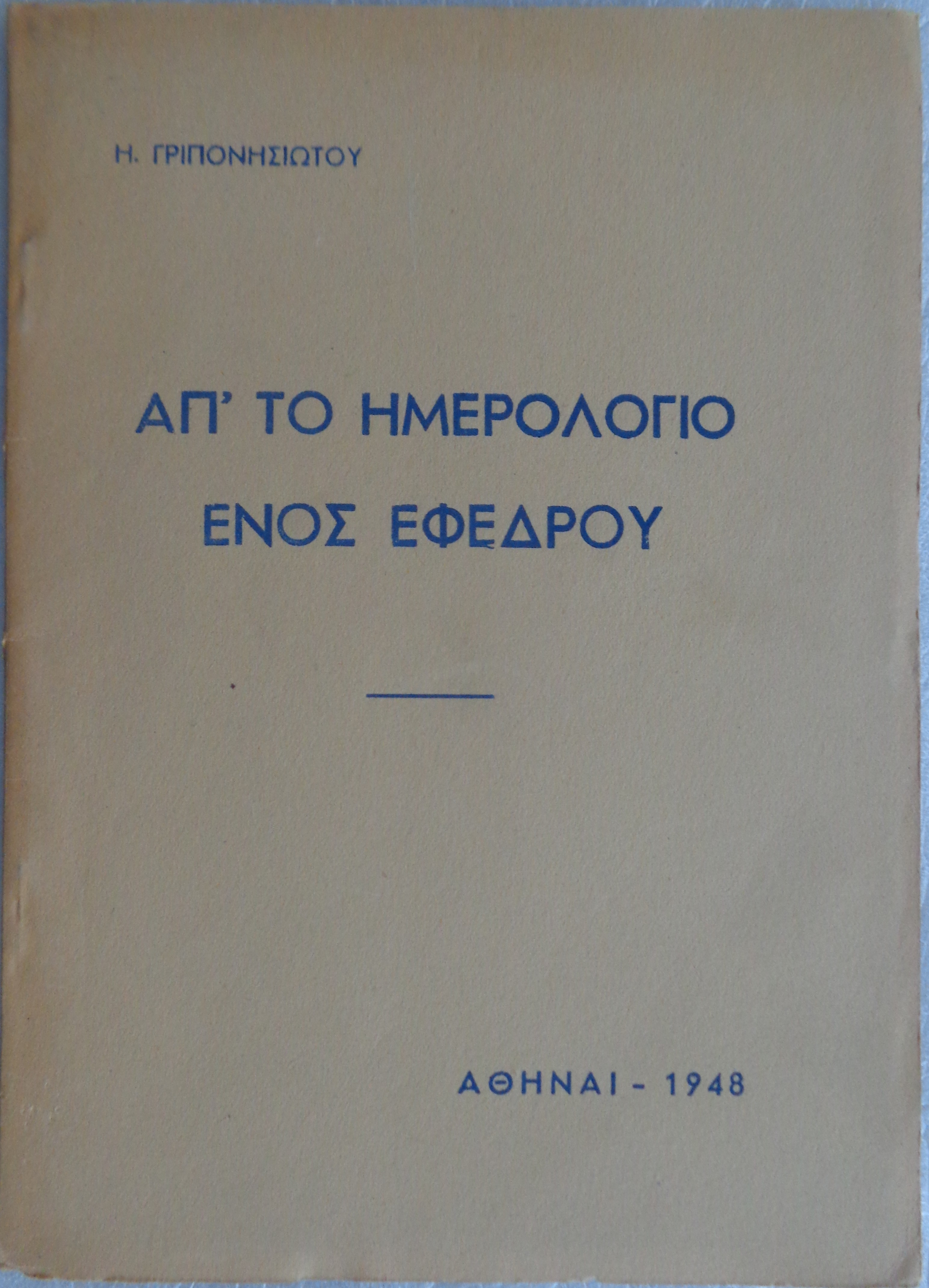 ΓΡΙΠΟΝΗΣΙΩΤΗΣ Η. Απ’ το ημερολογιο ενος εφεδρου Γριπονησιώτης Γριπονησιωτης ΑΠ ΤΟ ΗΜΕΡΟΛΟΓΙΟ ΕΝΟΣ ΕΦΕΔΡΟΥ