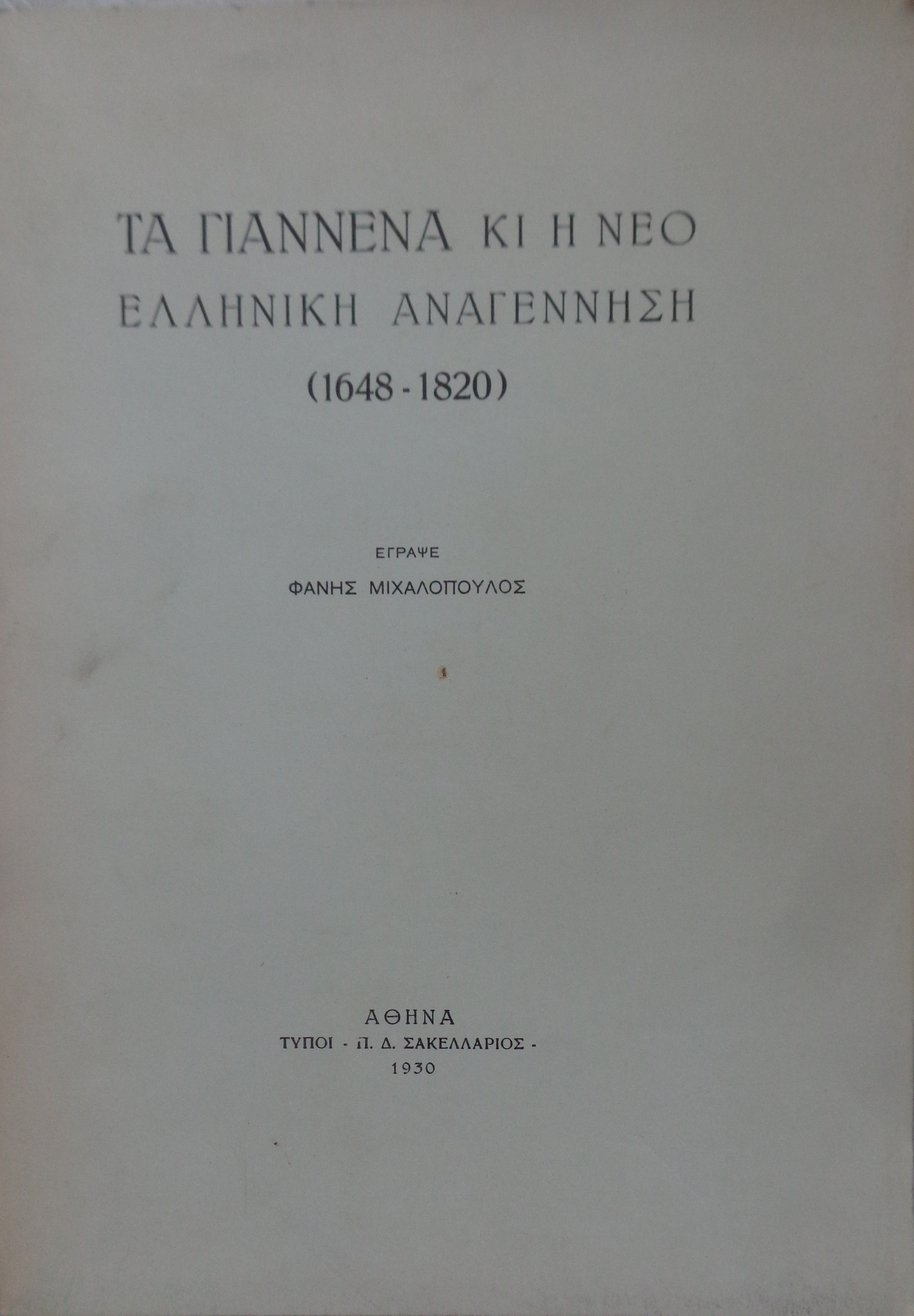 Φάνης Μιχαλόπουλος Φάνης Μιχαλόπουλος ΤΑ ΓΙΑΝΝΕΝΑ ΚΙ Η ΝΕΟΕΛΛΗΝΙΚΗ ΑΝΑΓΕΝΝΗΣΗ Τα Γιαννενα κι η Νεοελληνικη Αναγεννηση ΗΠΕΙΡΟΣ Ήπειρος Ηπειρος ΓΙΑΝΝΕΝΑ ΗΠΕΙΡΟΥ Ηπείρου Ηπειρου Epirus EPIRUS