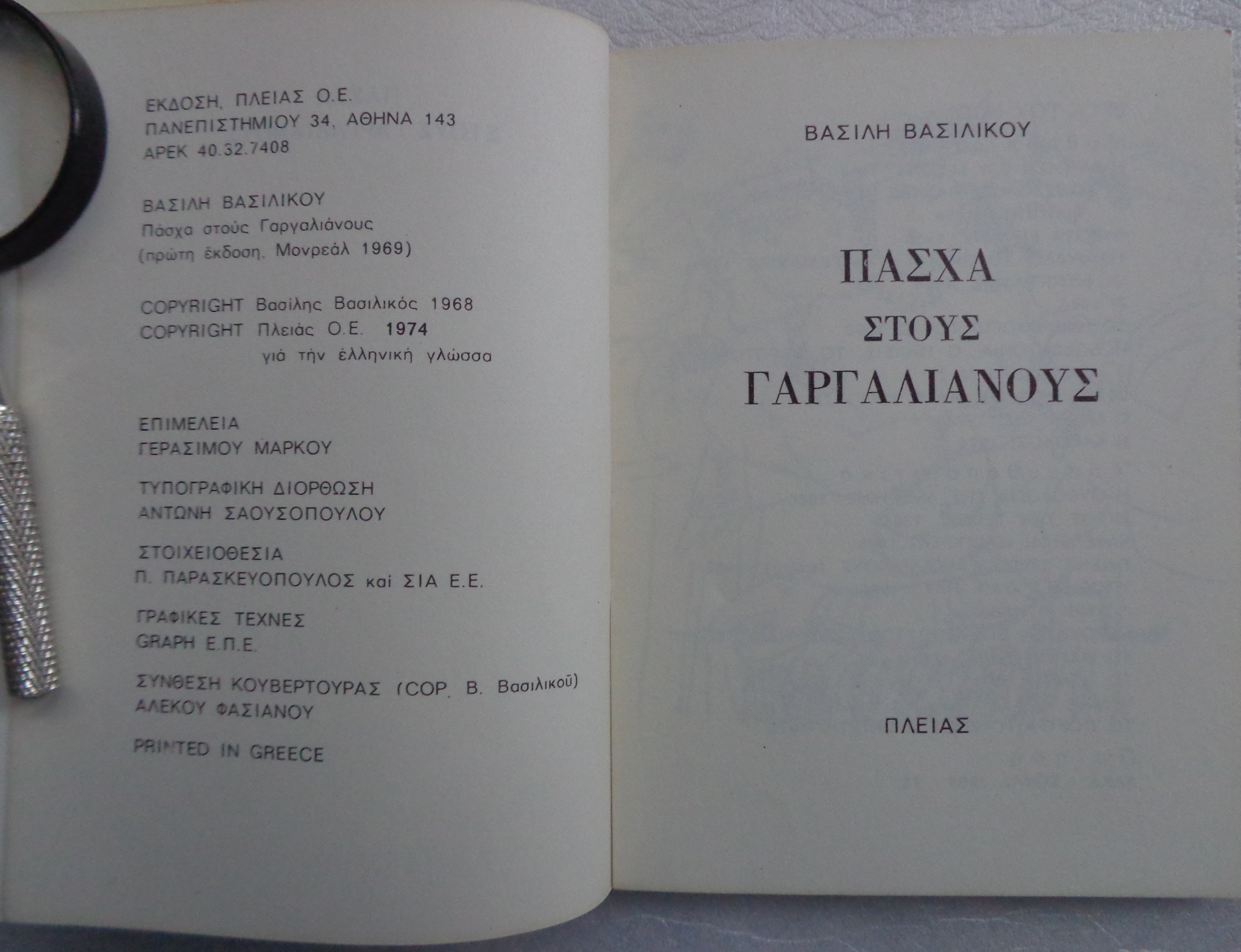 Εκδόσεις Πλειάς 1974 (Πρώτη έκδοση Μοντρεάλ, Κούρος, 1969).