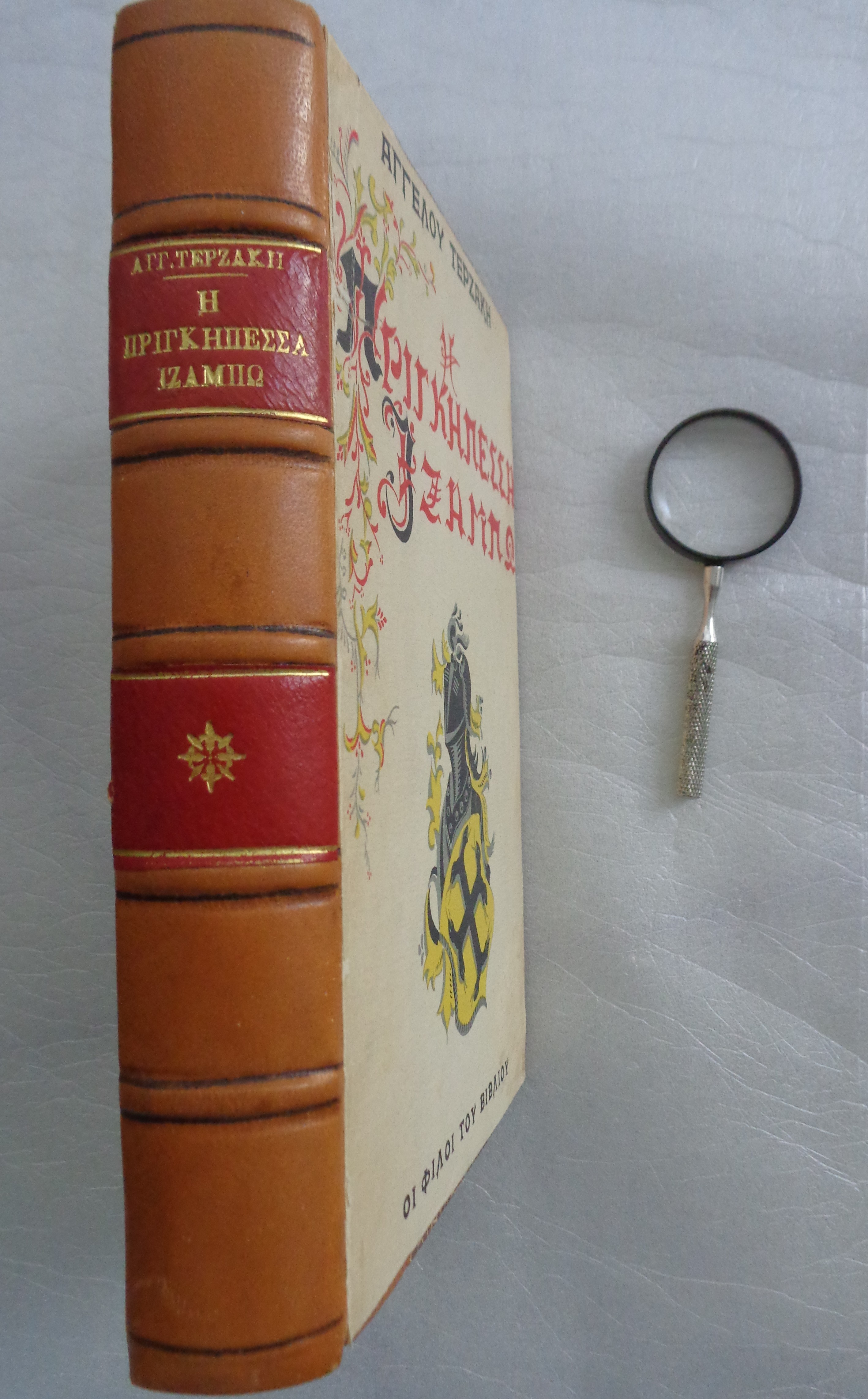 Ιδιωτική βιβλιοδεσία με δερμάτινη ράχη.